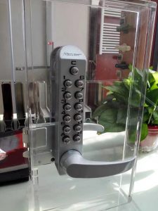 產(chǎn)品簡(jiǎn)介:KEYLEX機(jī)械密碼鎖為全機(jī)械式,不用電池和電源,也不用布線,安裝簡(jiǎn)單,可以用12個(gè)按鈕組合記憶密碼,任意設(shè)置,按鈕是特殊加工的不銹鋼按鈕,不會(huì)殘留下使用的痕跡。機(jī)械密碼鎖防盜,美觀,入戶門首選!
